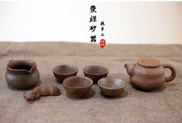 无釉黑砂拉丝提梁茶具¥20.00 -